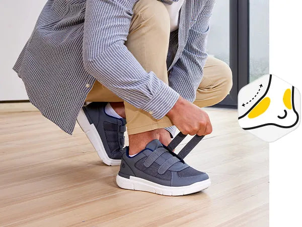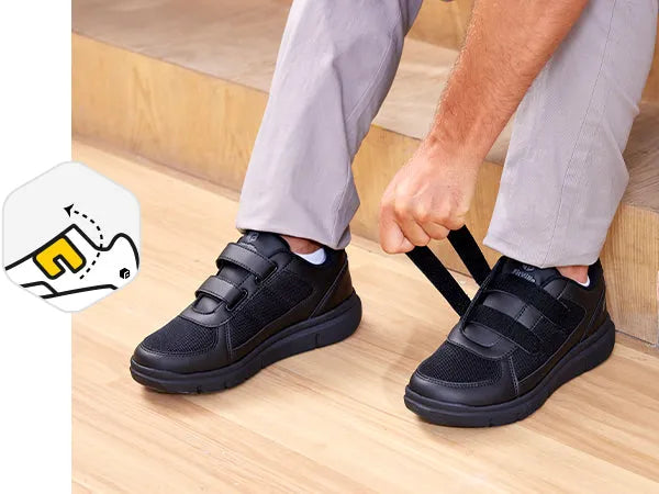 Sperimenta il massimo del comfort e del sollievo con le scarpe FitVille EasyTop® per Piede Diabetico. Queste calzature sono la soluzione definitiva per il benessere dei tuoi piedi, specialmente se devi gestire gonfiori o sensibilità estrema. Immagina una punta extra-larga e un collo del piede alto che accolgono delicatamente il piede, offrendo tutto lo spazio e il sostegno di cui hai bisogno.