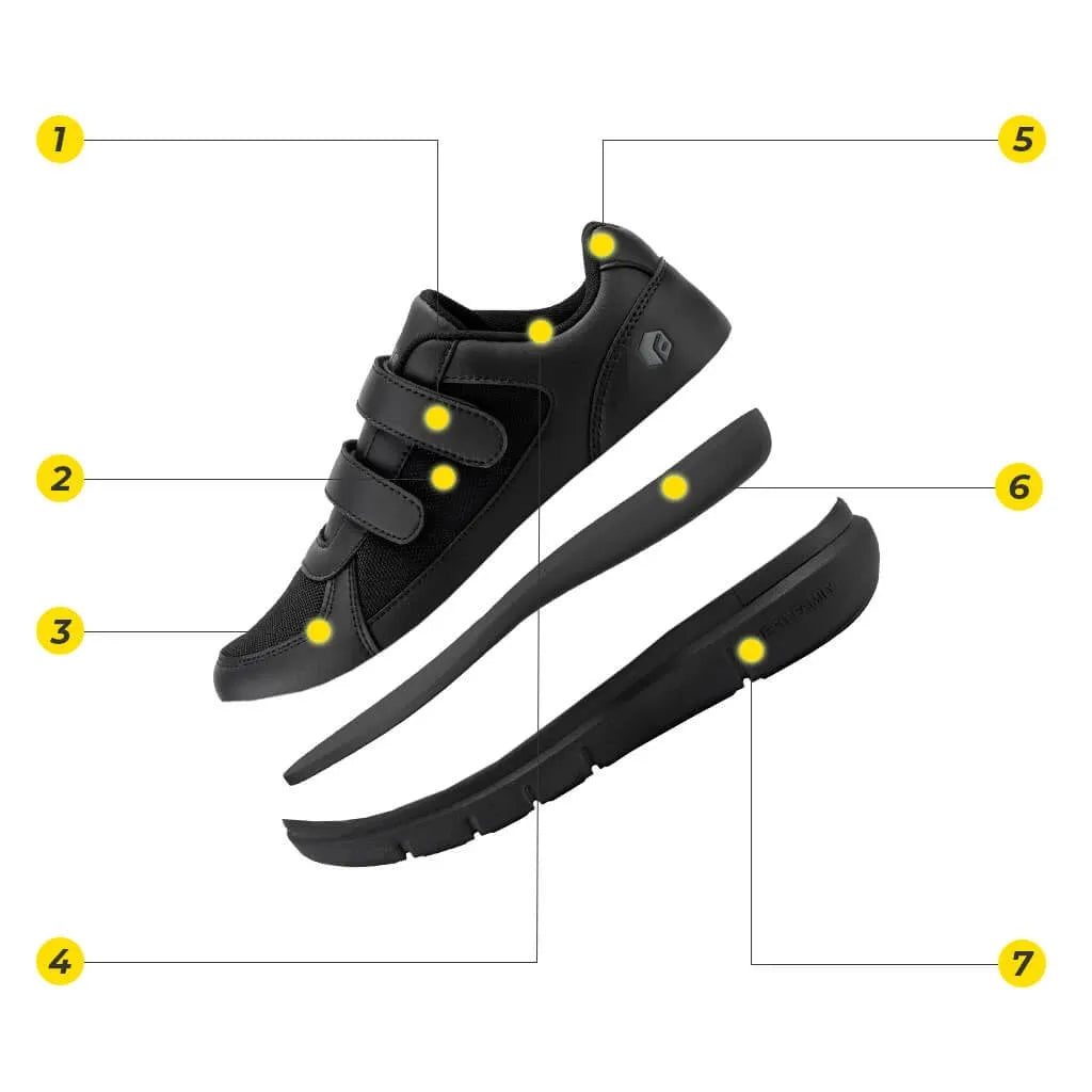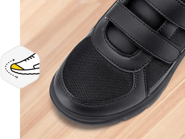 Ciò che rende davvero speciali queste scarpe sono i dettagli curati: l'avampiede ampio e la tomaia traspirante mantengono i piedi freschi, evitando il surriscaldamento. Il dolore al tallone viene alleviato rapidamente grazie alla talloniera ergonomica che distribuisce pressione e urti. Inoltre, non dovrai preoccuparti della stabilità: la nostra suola in gomma piena ti garantisce passi sicuri e fermi.